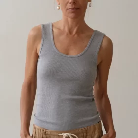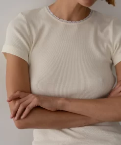 Donni The Vintage Rib Lace Tee Heather-Grey | Womens Tops
