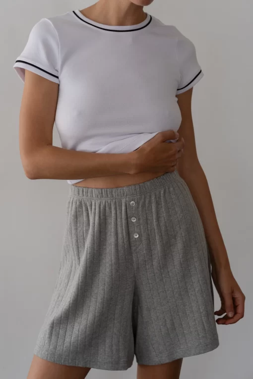 Donni The Stripe Eco-Terry Short Heather-Grey | Womens Bottoms