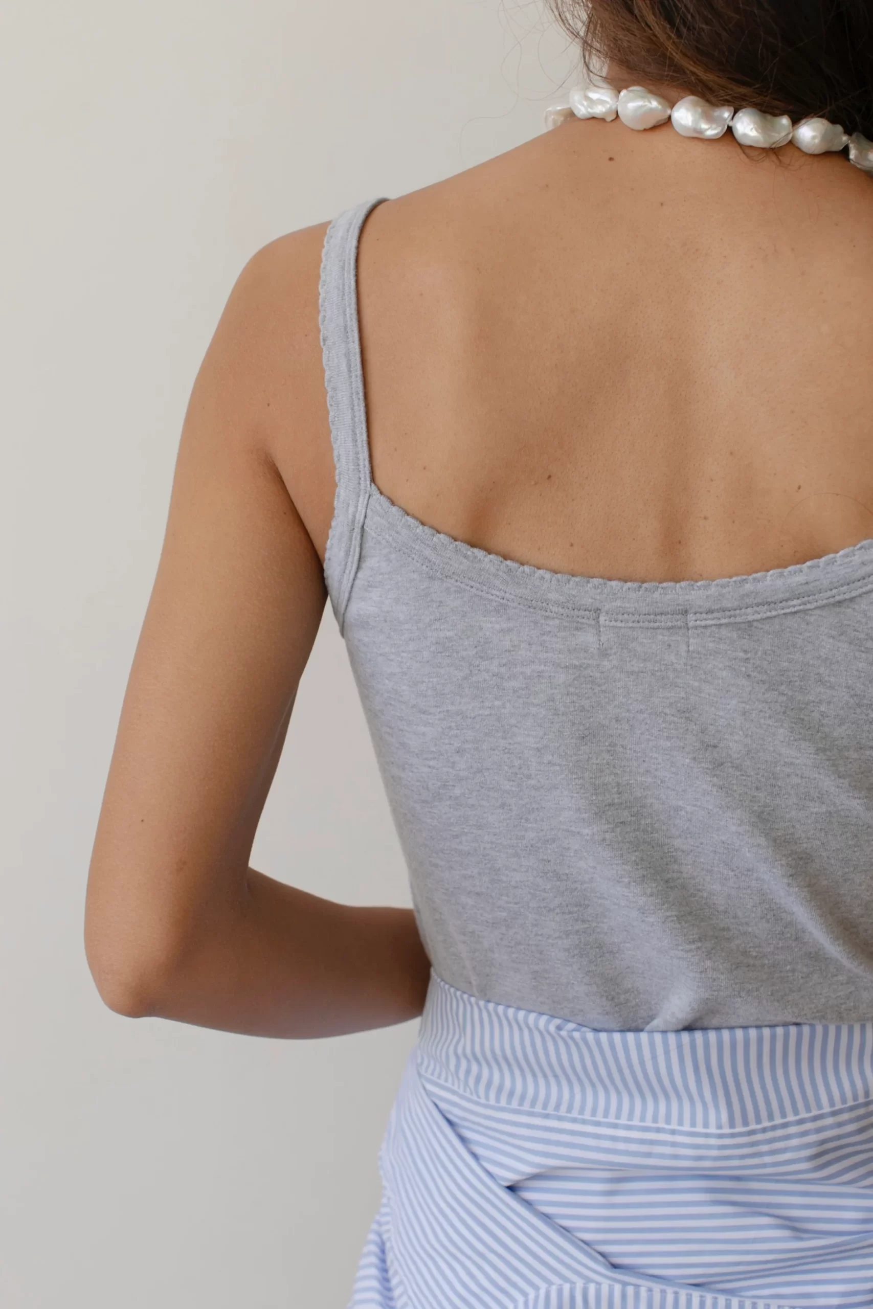 The Baby Rib Scallop Tank is crafted with our softest fabric yet, featuring a slightly cropped fit and scalloped edges on the neckline & straps. Set it up with — The Baby Rib Scallop Pant Made in LA