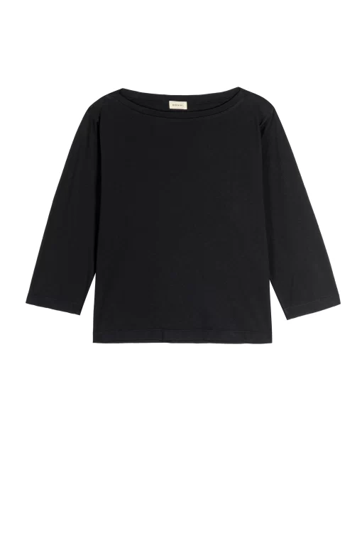The Jersey Relaxed Boatneck is crafted from 100% cotton and designed with an easy fit, 3/4-length sleeves, and an elegant boat neckline.