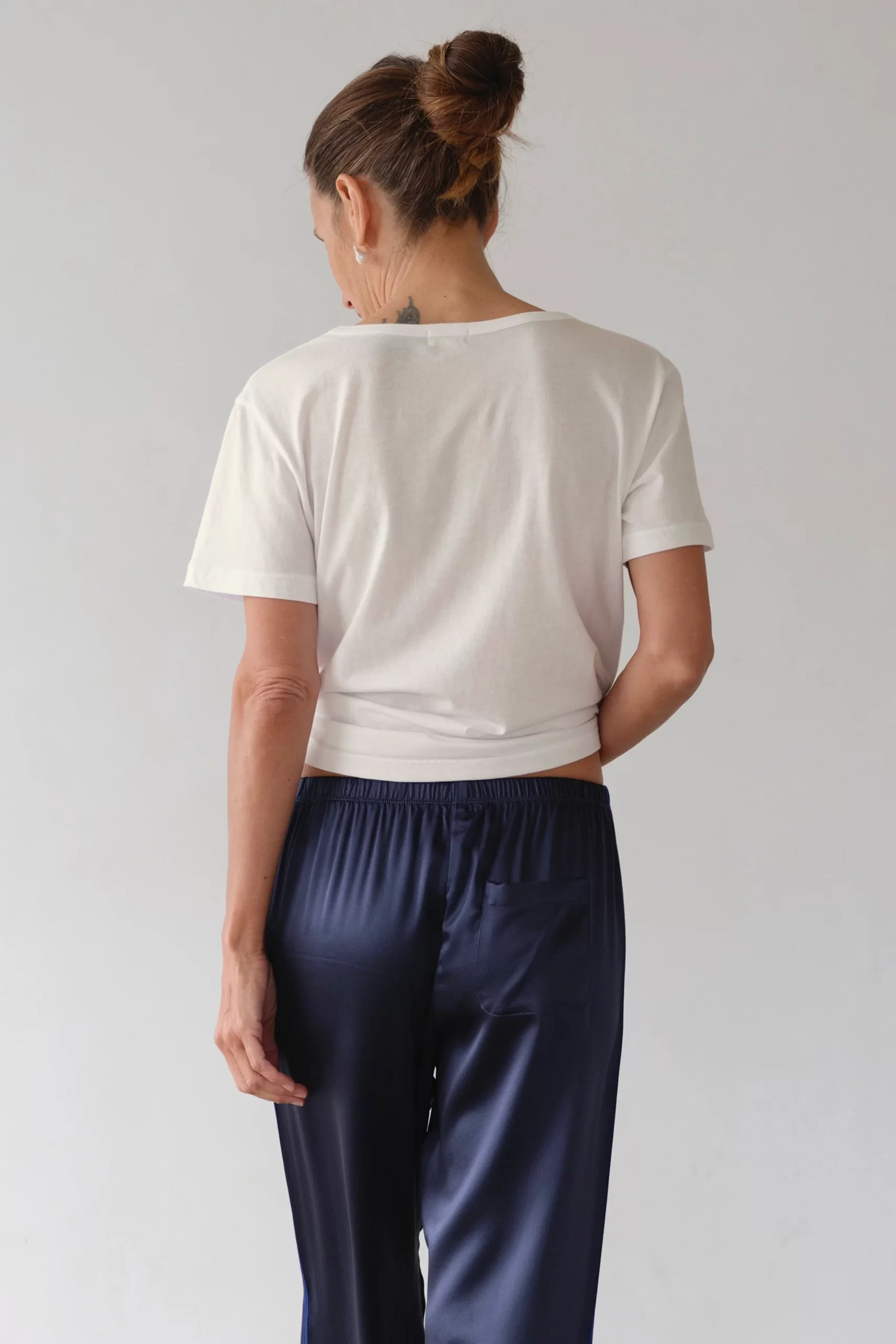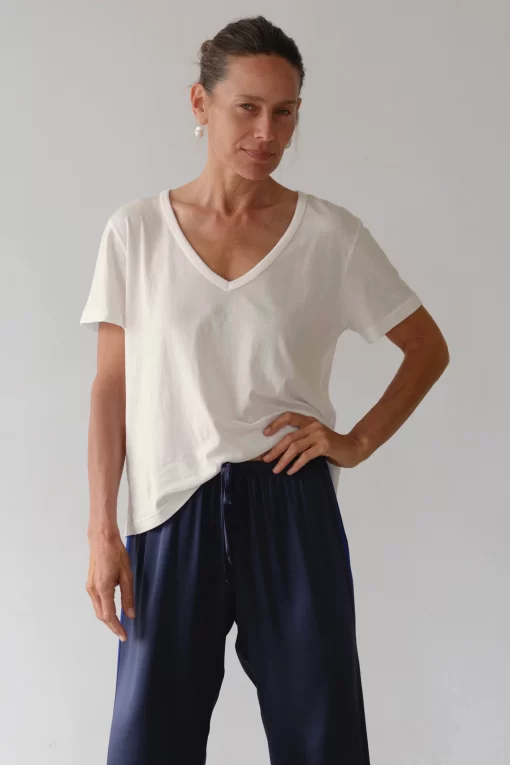 The Jersey Relaxed V-Neck is crafted from 100% cotton and features a softly structured V neckline and an easy, wearable fit.