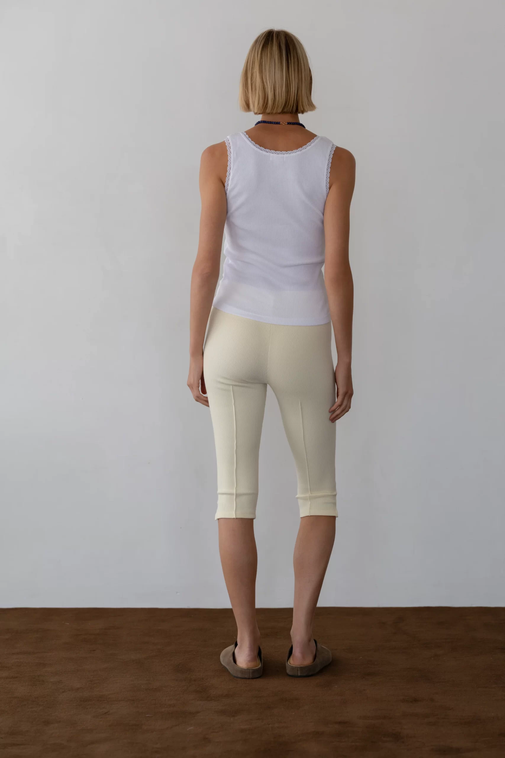The Rib Pedal Pusher is cut from our best-selling, ultra-flattering rib fabric and features a high-rise fit, pintuck detailing, a fine ribbed texture, and a cropped length.