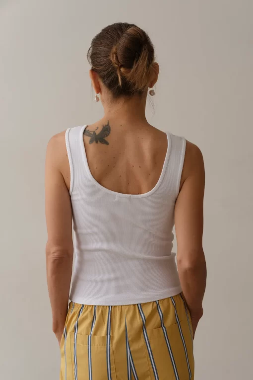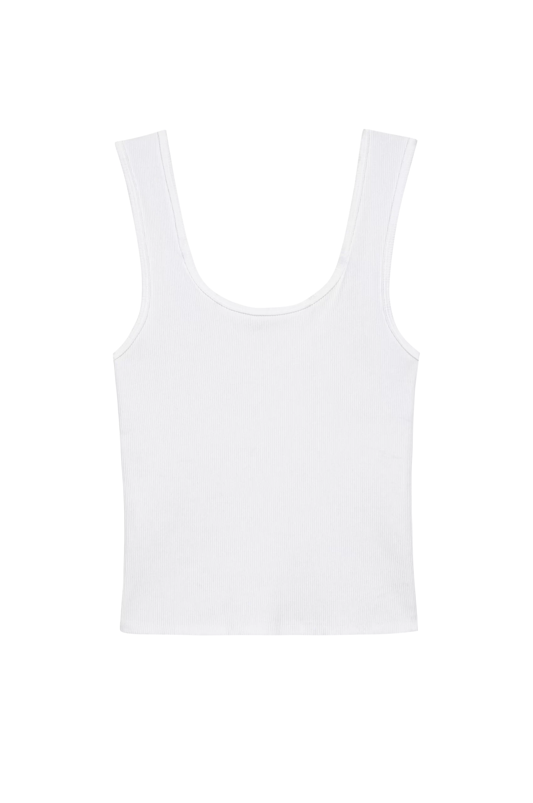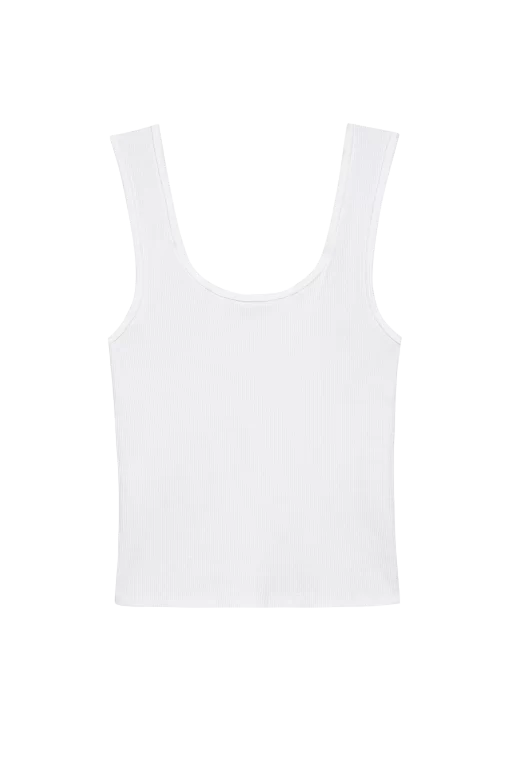 Our iconic rib fabric, reimagined in a versatile scoop tank made to wear anywhere. Effortlessly layer it or wear it solo—designed with a flattering scoop neckline in the front and back, and a fine rib texture that offers just the right amount of hold—no bra required.