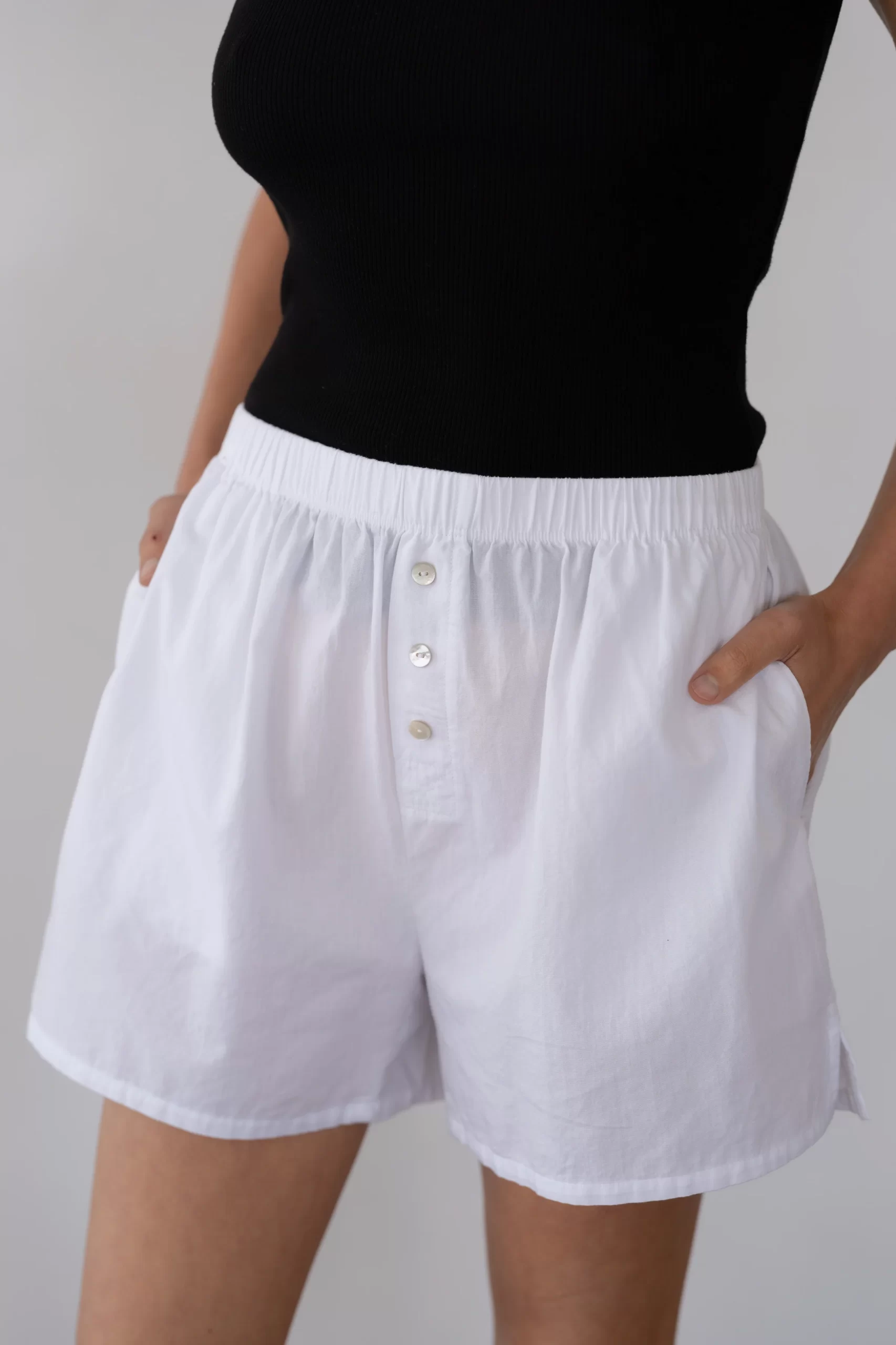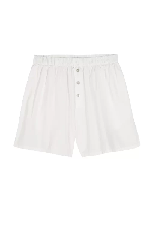 The Sandwash Boxer Short is cut from soft, breathable 100% cotton. Designed for ease, with side pockets, an elastic waistband, and mother of pearl buttons.