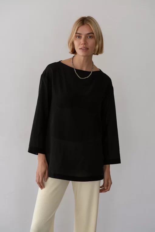 Be the first to review “Donni The Silk Cotton Sheer Boatneck Jet | Womens Tops” Cancel reply