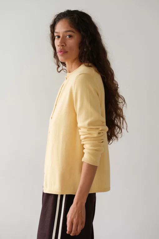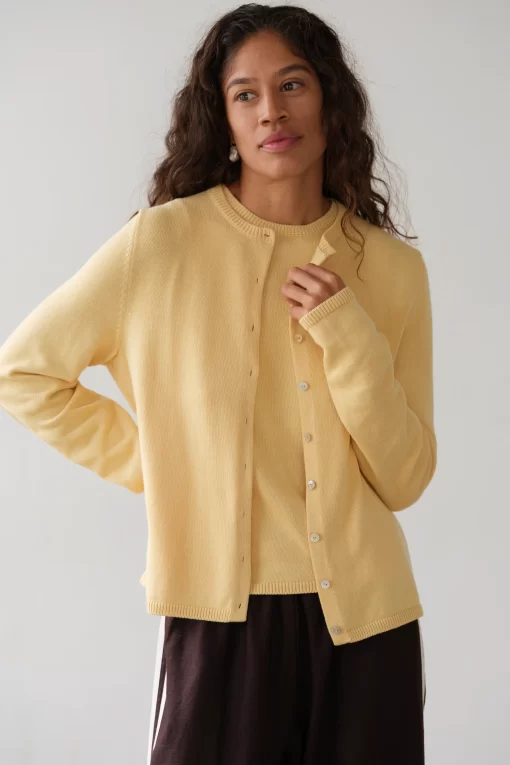 The Sweater Set is crafted from 100% organic cotton for a soft, breathable feel. It includes a matching cardigan—finished with delicate mother-of-pearl buttons—and a sleeveless shell. Designed for a true-to-size fit, this effortlessly chic set is endlessly versatile: wear the pieces together or style them separately. P